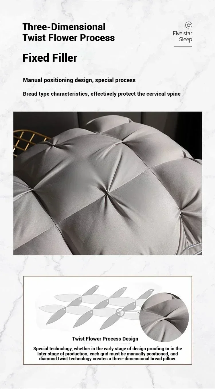 100% Cotton 3D Style Rectangle Pillow Luxury White Goose Down Pillows Down-proof King Queen Bedding for You Lover Gift 48x74cm