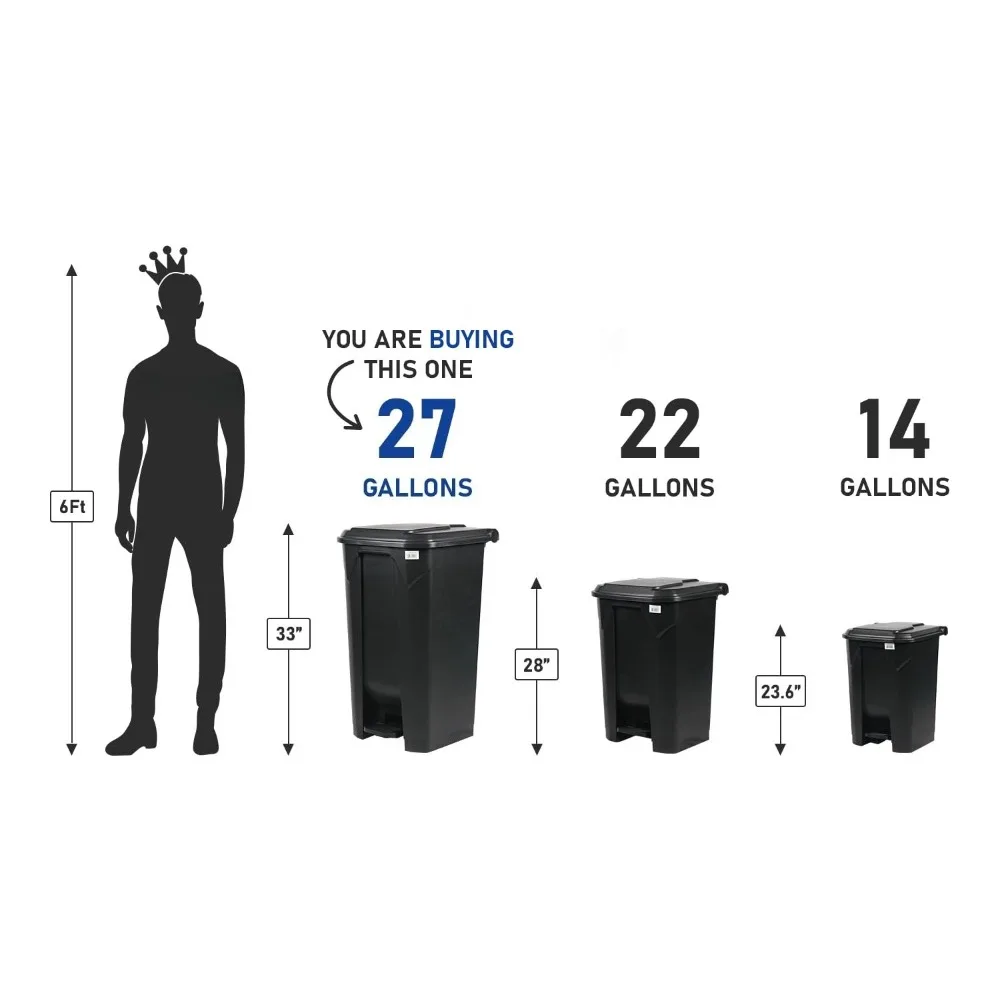 27 Gallon Step-On Trash Can/Container, Black Plastic Dustbin with Lid and Foot Pedal, Hands-Free Disposal