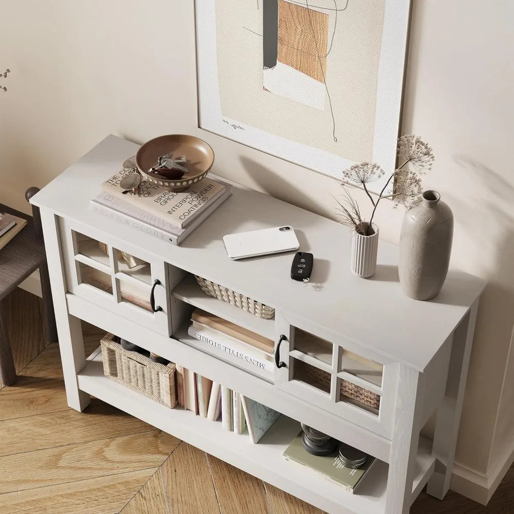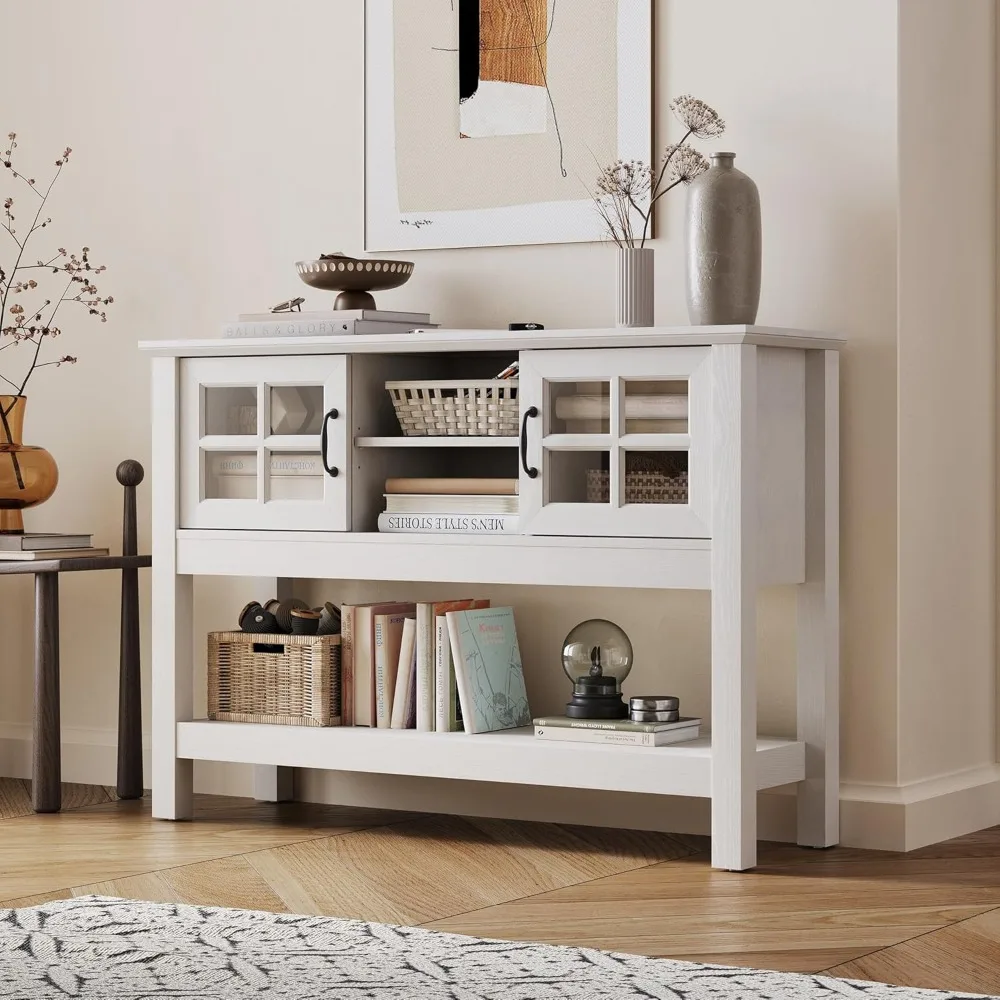 - Ample Storage Space - Featuring two cabinets with adjustable shelves perfect for showcasing books, decorative items, and cherished collections, while an open bottom shelf for larger items, the console table is an excellent choice for keeping clutter at bay