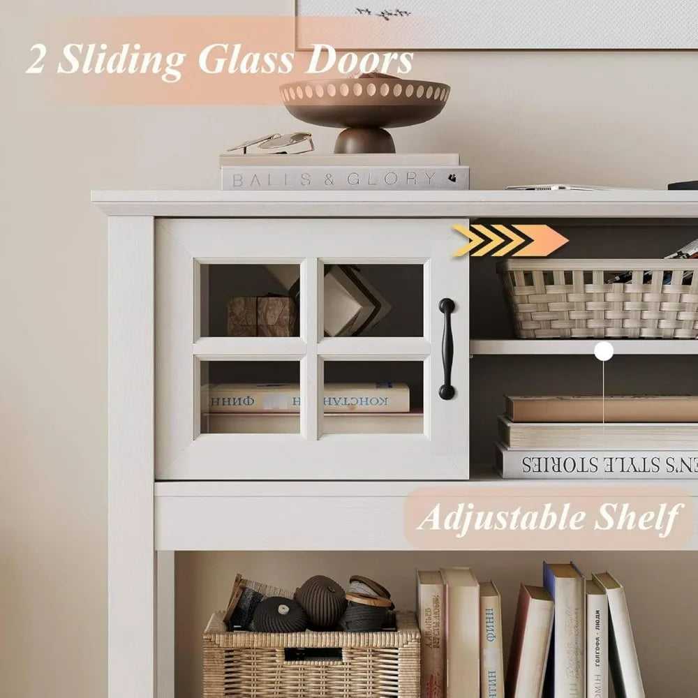 46“ Console Table with Sliding Glass Doors, Coffee Bar, Modern Entryway Table with Storage Shelf, Sofa Table Behind Couch, Buff