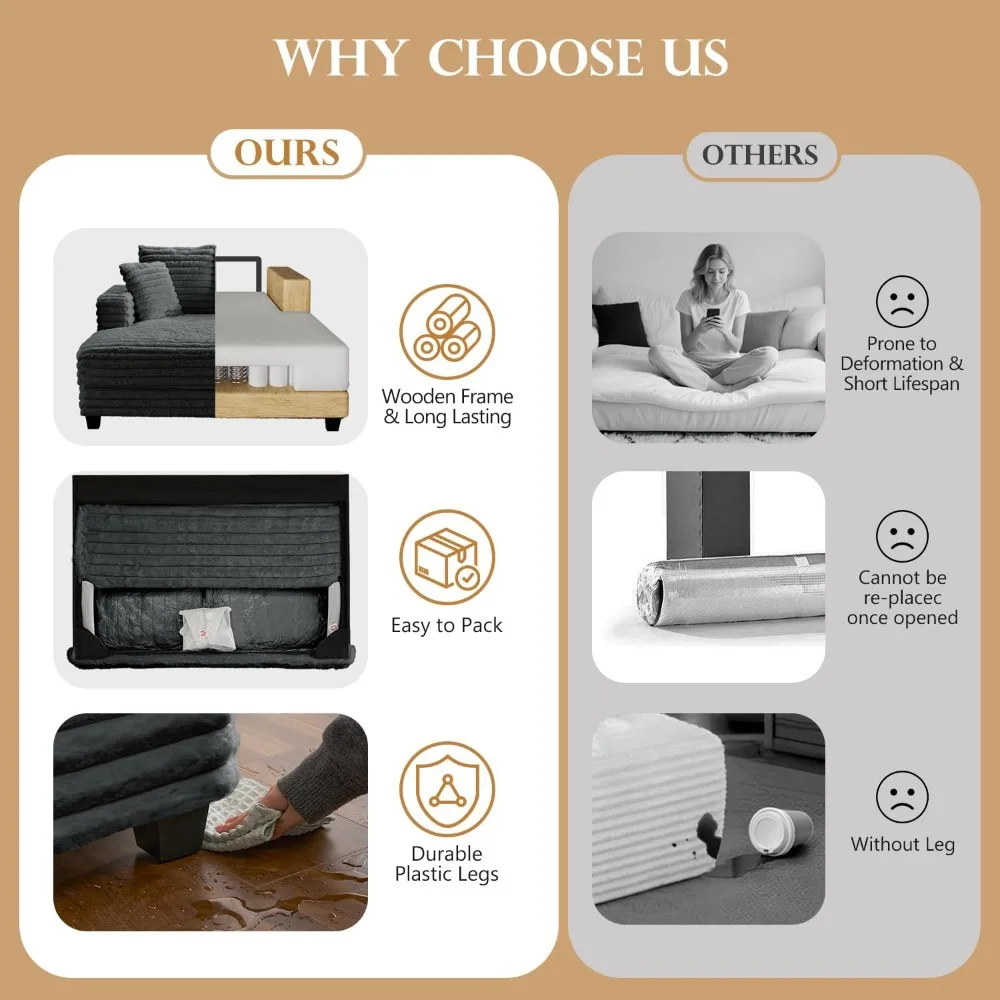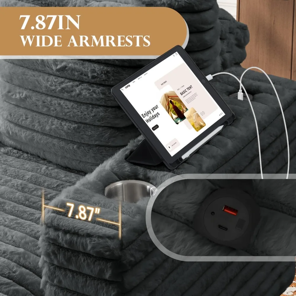 - 【Practical and Versatile Design】- This contemporary chaise lounge is ergonomically designed with backrest pillow, lumbar pillow provide comfortable back and lumbar support, the 7.87 inch wide armrest allows the arms to rest, combines comfort with functionality. The USB and Type-C charging ports are designed to be more convenient and can charge your electronic devices at any time. The cup holders and side pockets are designed to make it easier for you to access the water cup and magazine
