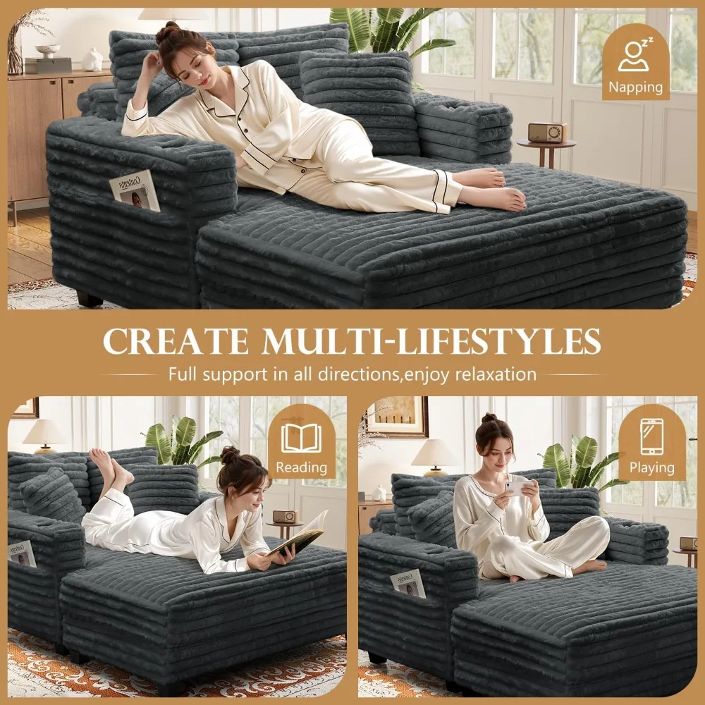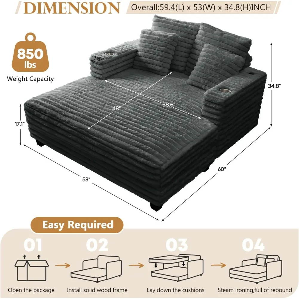 - 【Oversized Design】- With a generous 53-inch width and a spacious59.4-inch deep resting area, our oversized chaise lounge offers ample room to stretch out and unwind, making it the perfect addition to living rooms, movie rooms, bedrooms, or game rooms. Whether you're reading, watching movies, napping, or gaming, this chair is designed to provide exceptional comfort and relaxation, ensuring a truly rejuvenating lounging experience