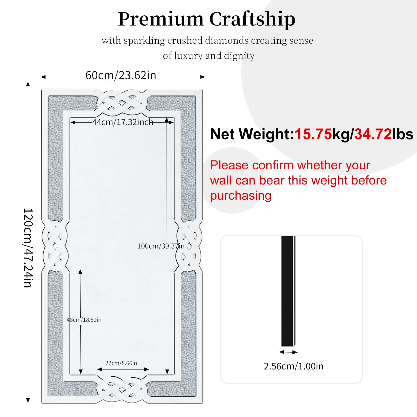 Hign-concerned Crystal Accent Rectangle Mirror Wall Decor