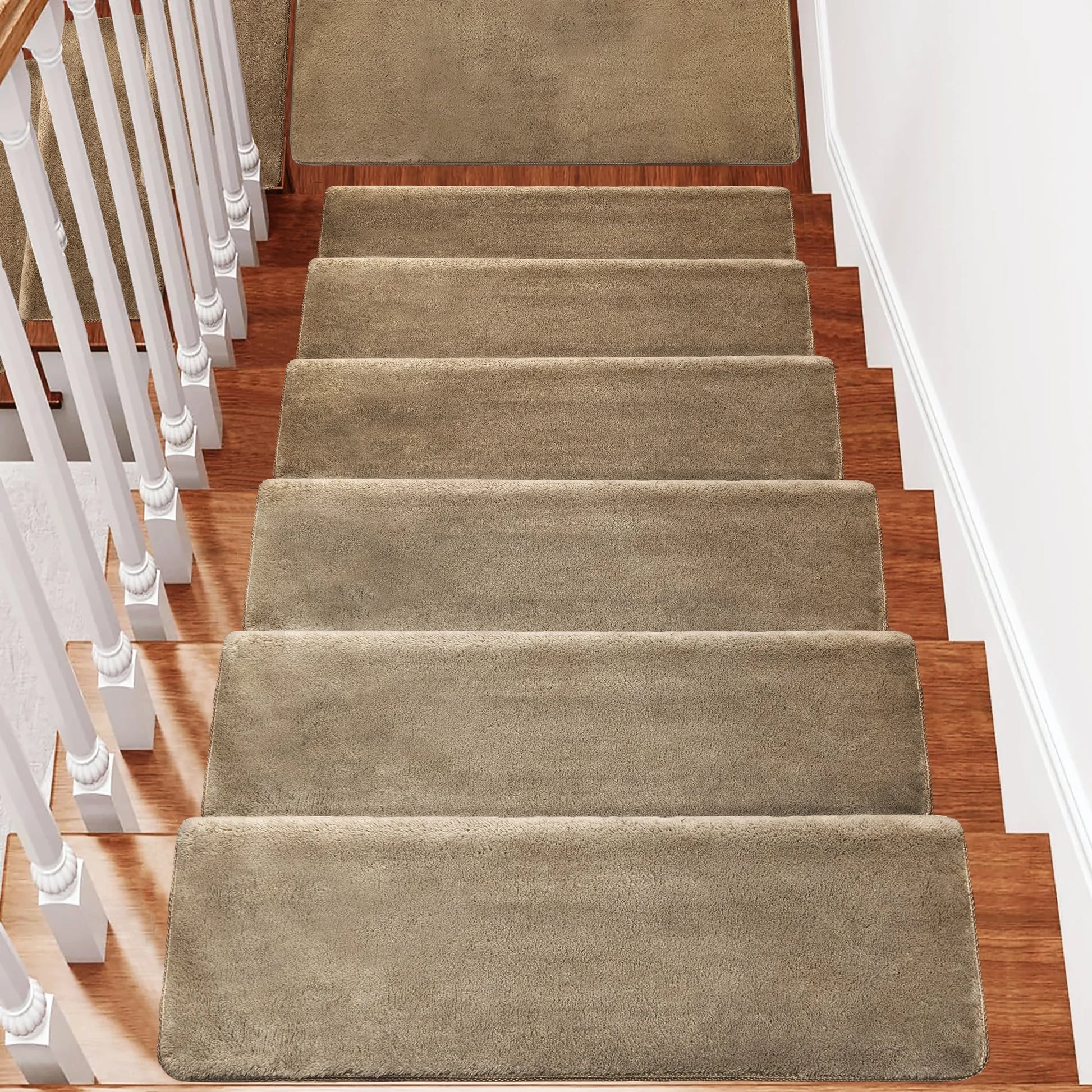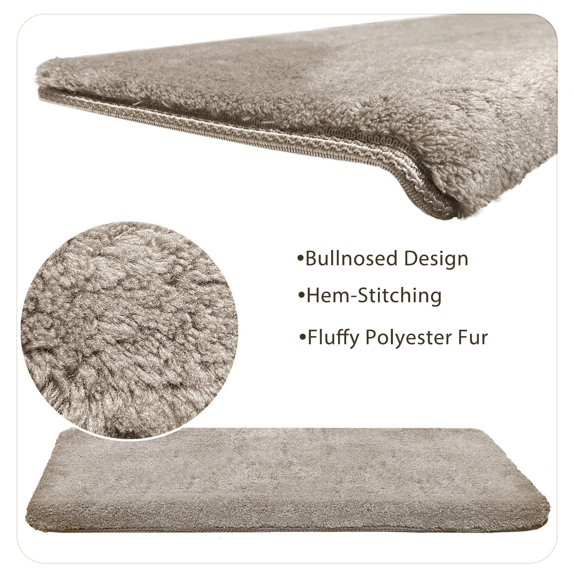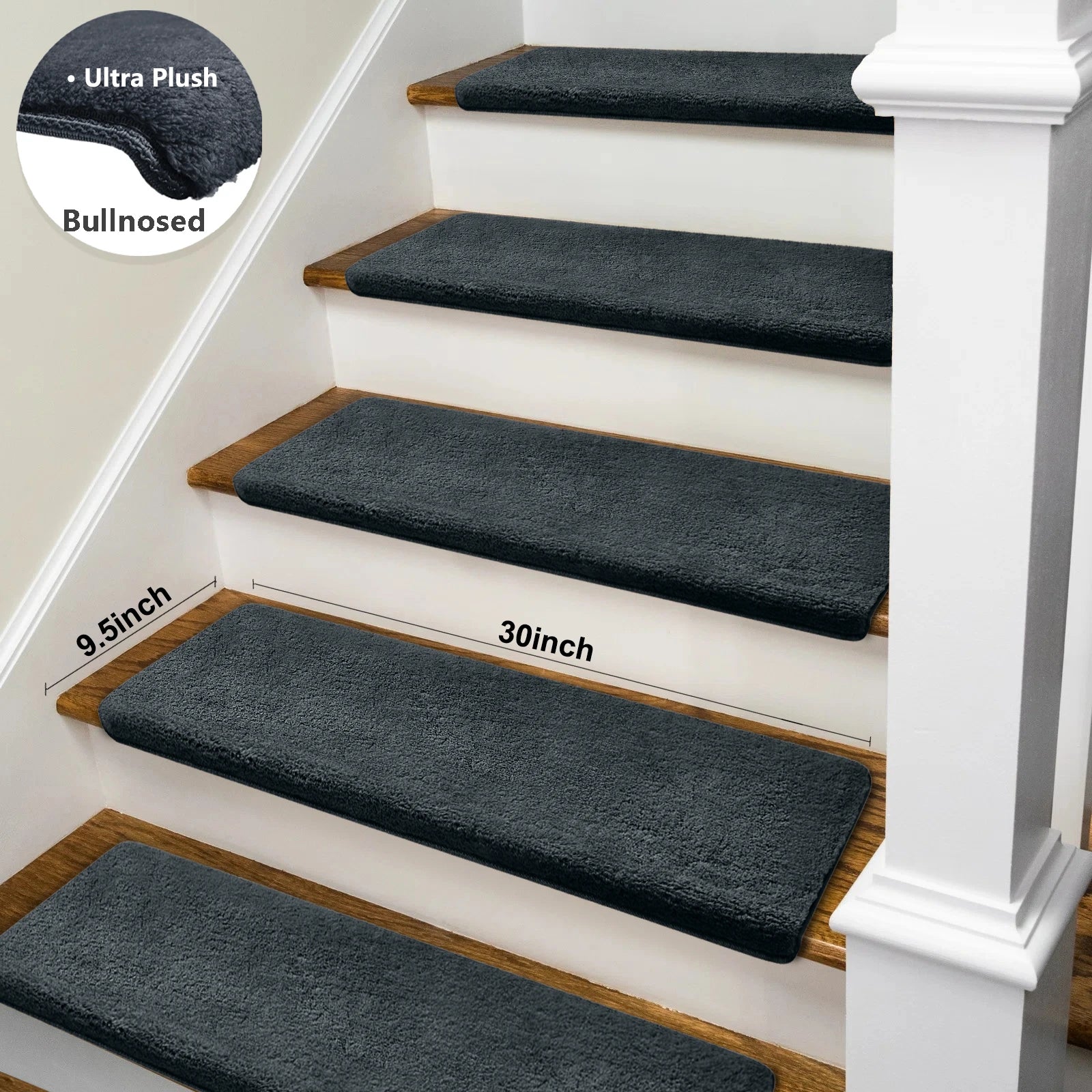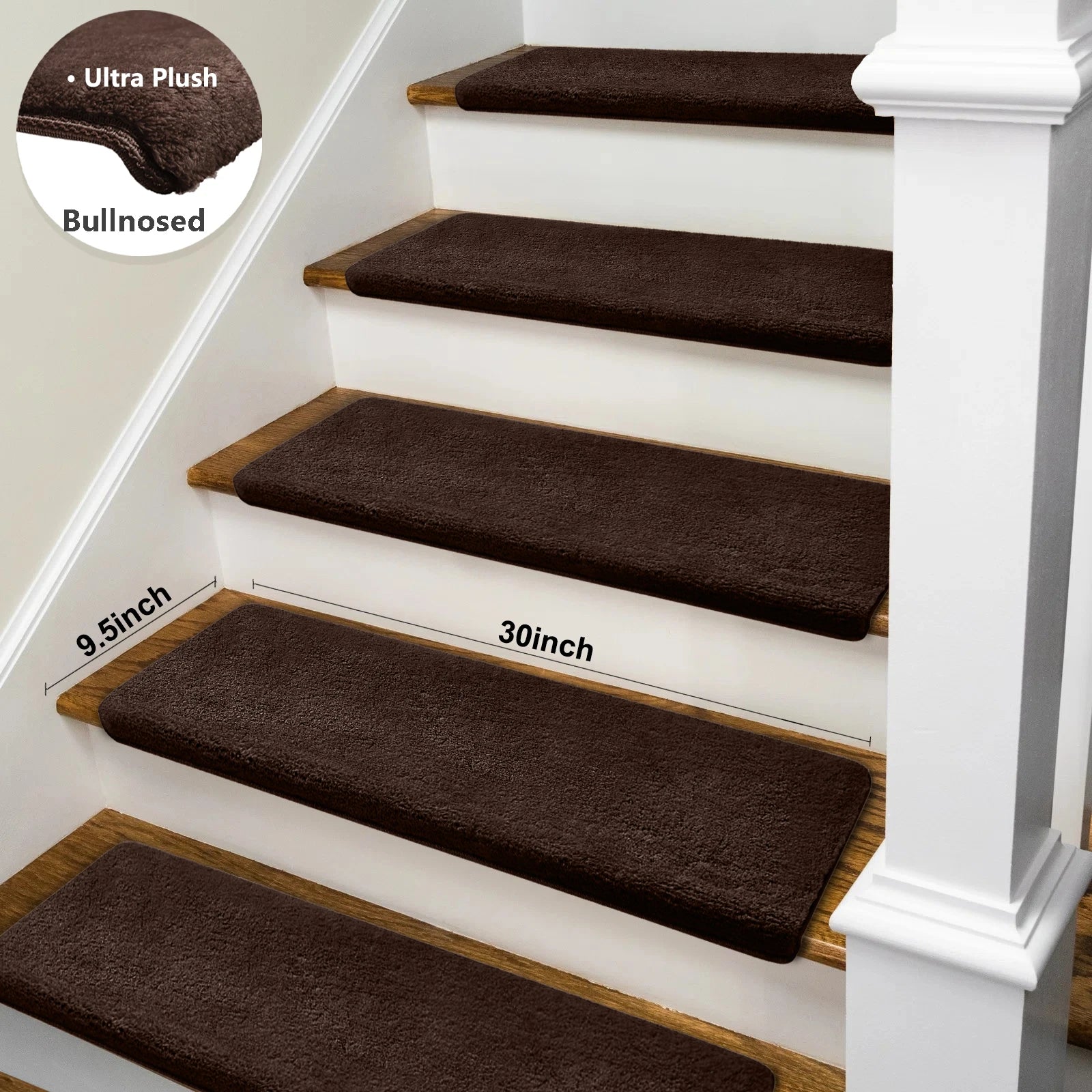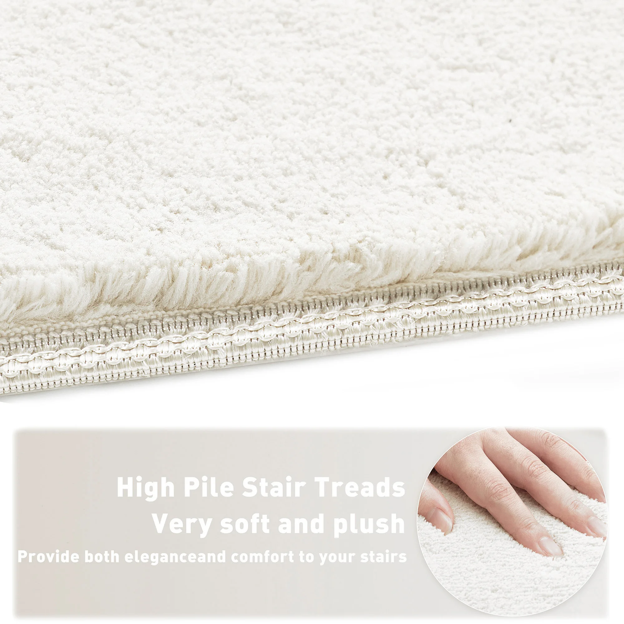 Bullnose Non-Slip Stair Treads -Ultra Plush- Washable Self-Adhesive Carpet Mats, Safety for Elderly & Pets, Peel & Stick Decor