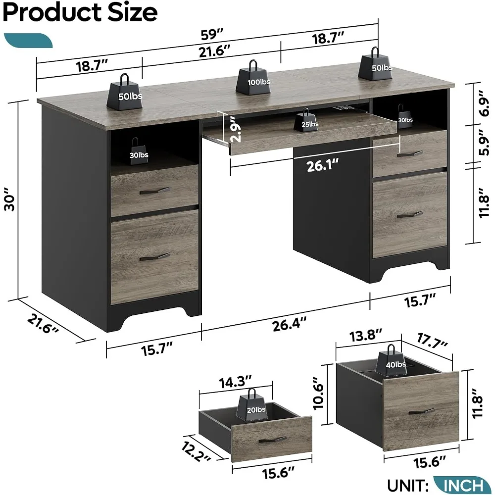 - Spacious Workspace: With a generous desktop size of 59" x 22", work desk provides plenty of room for your computer, documents, and other office essentials, making multitasking a breeze