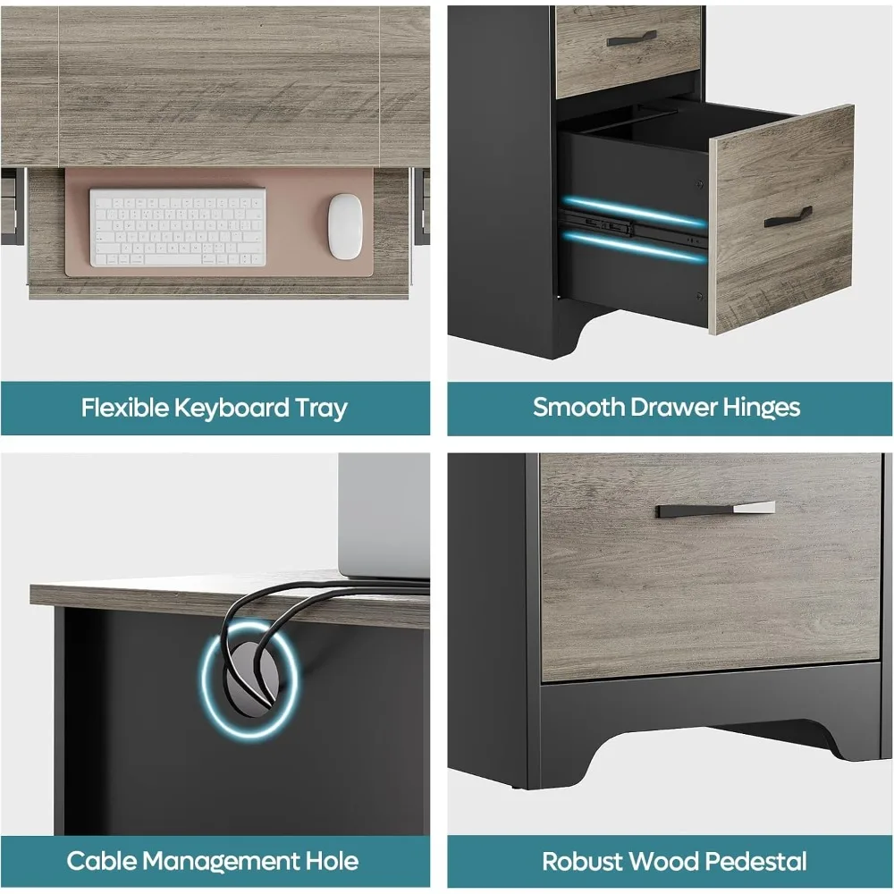 - Robust & Durable: Crafted with 2 robust pedestals, modern desk can comfortably support up to 200 lbs on the desktop, 20 lbs in the storage drawers, and 40 lbs in the file drawers, making it ideal for housing a variety of office equipment