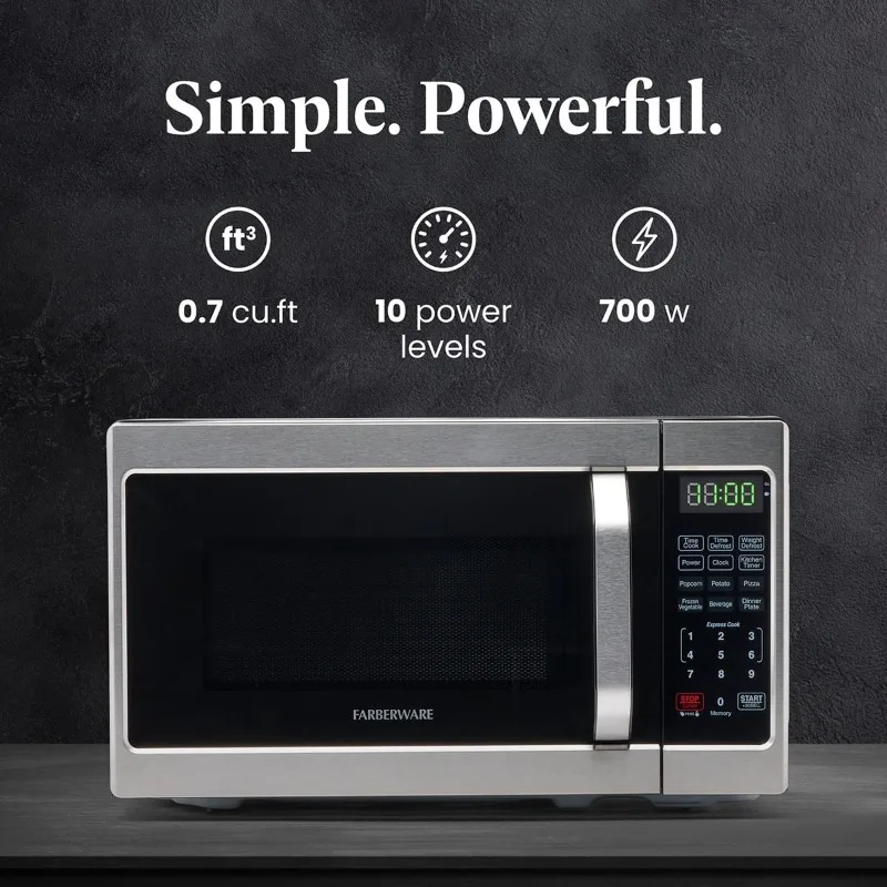 Farberware Countertop Microwave Oven with LED Lighting & Child Lock, 0.7 Cu Ft Brushed Stainless