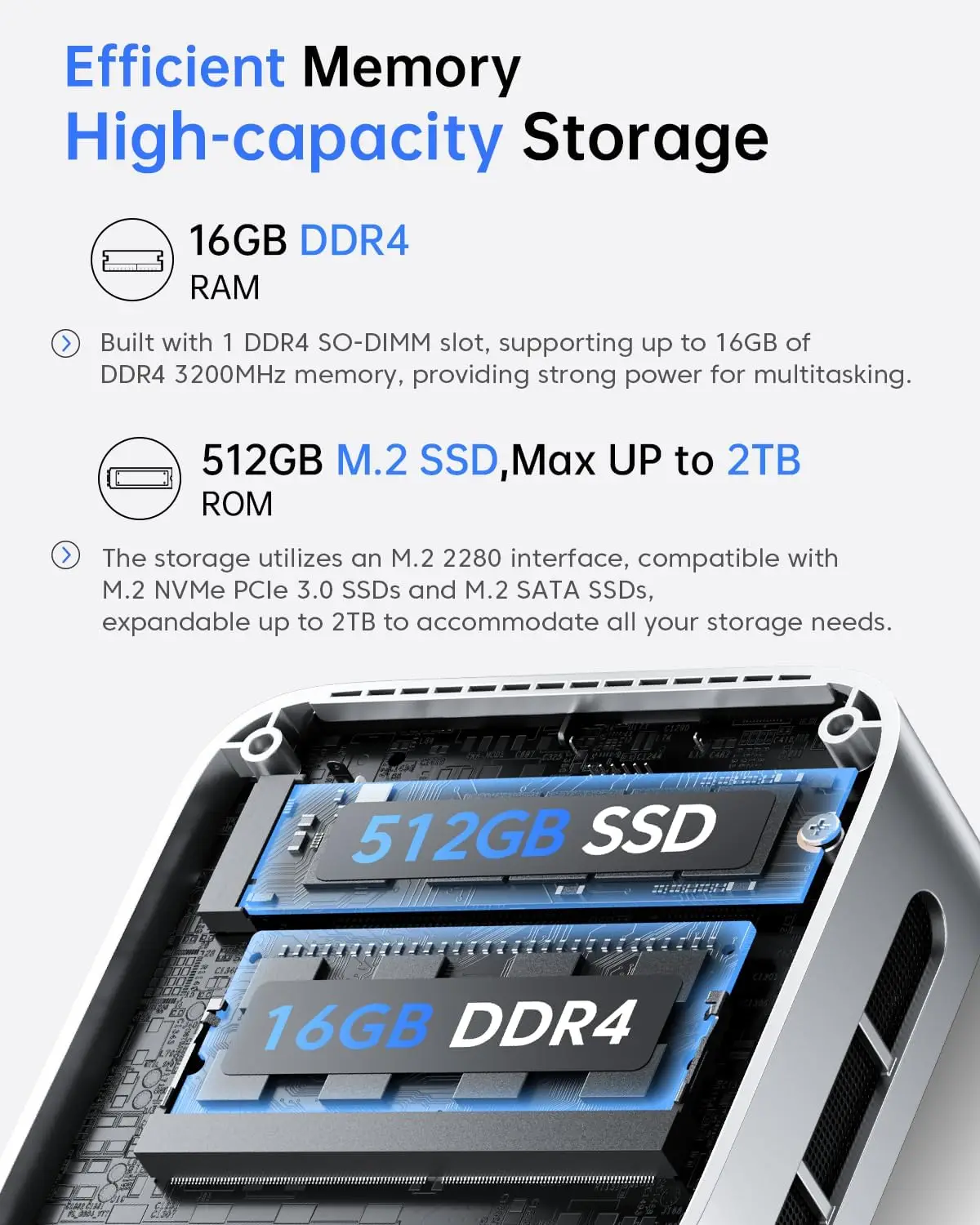 high-speed 16GB DDR4, Built-in 512GB M.2 2280 SSD.16GB of RAM memory makes your entire system speedy and responsive