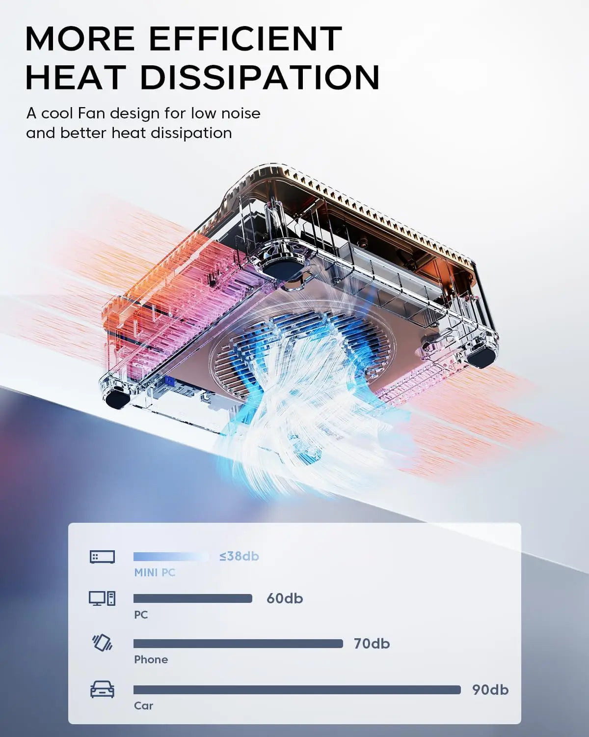 The mini computer measures only 5.1 in * 5.1 in * 1.96 in, you can be easily placed in crowded workstations or small spaces.