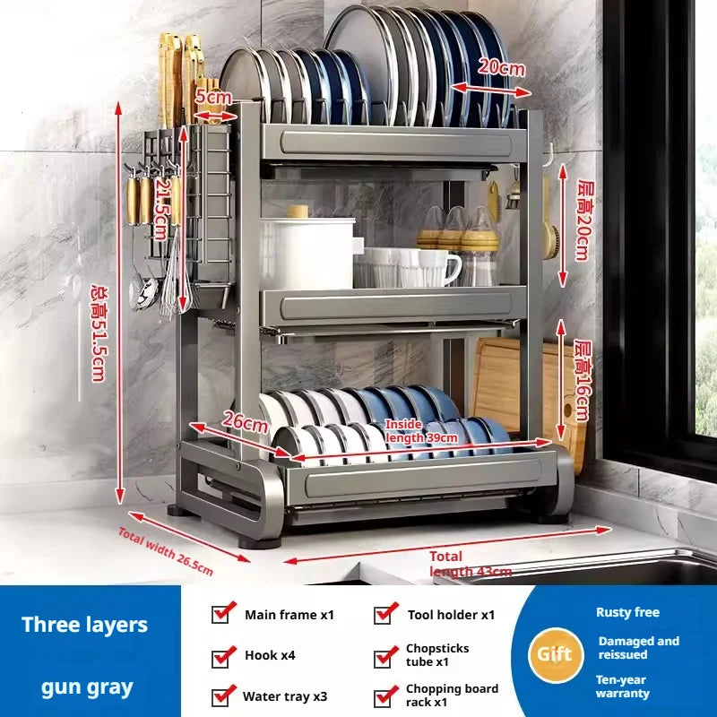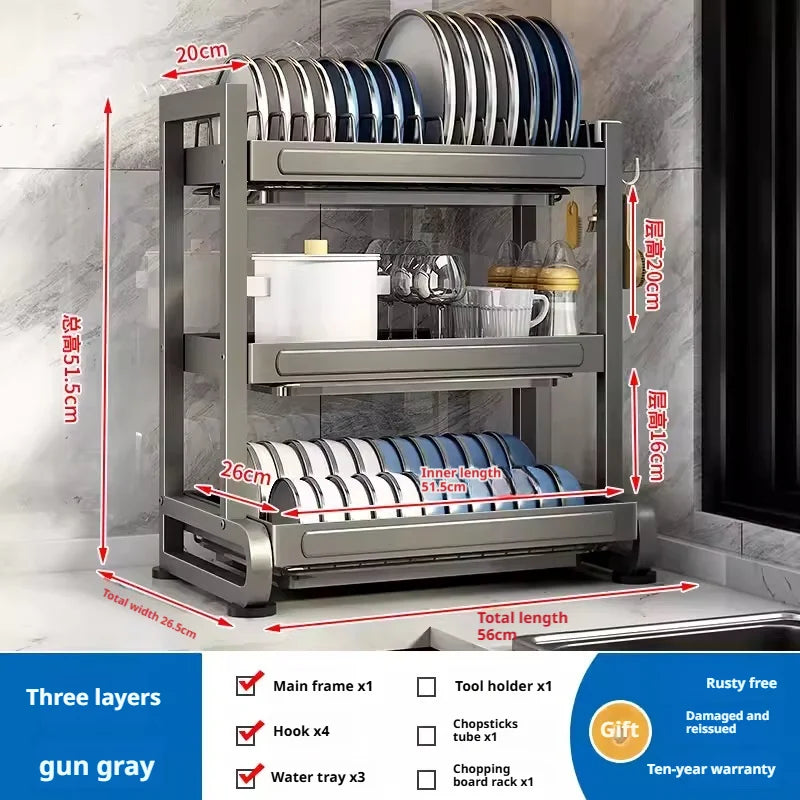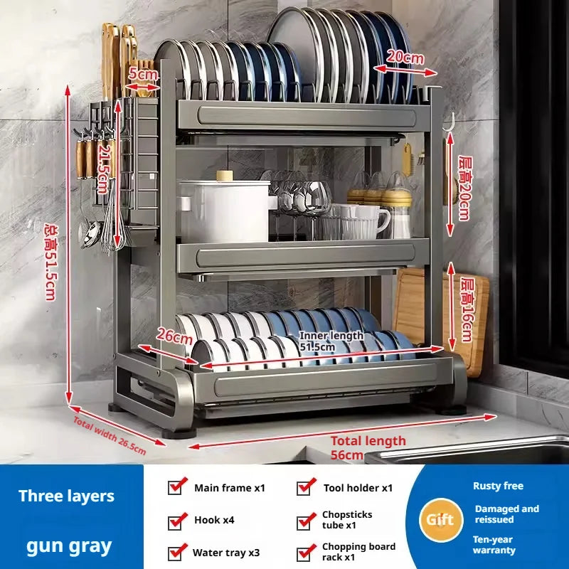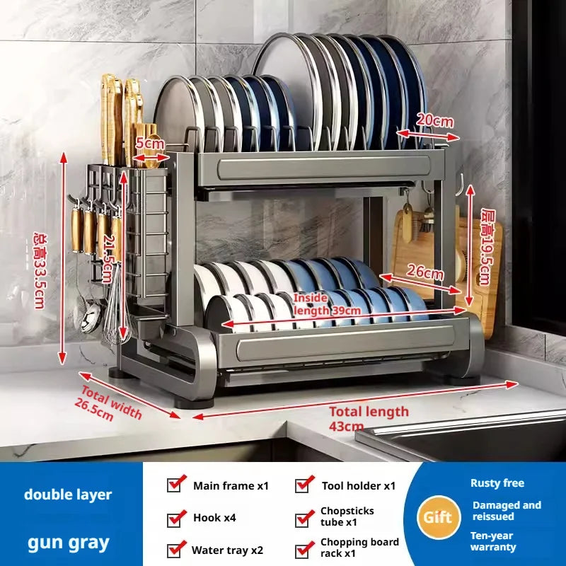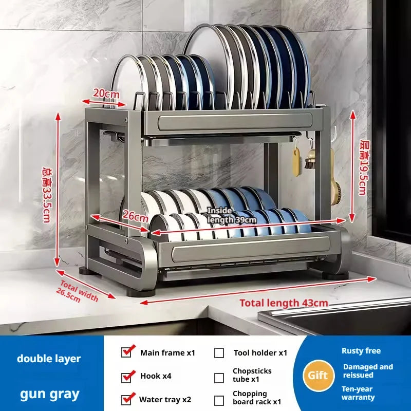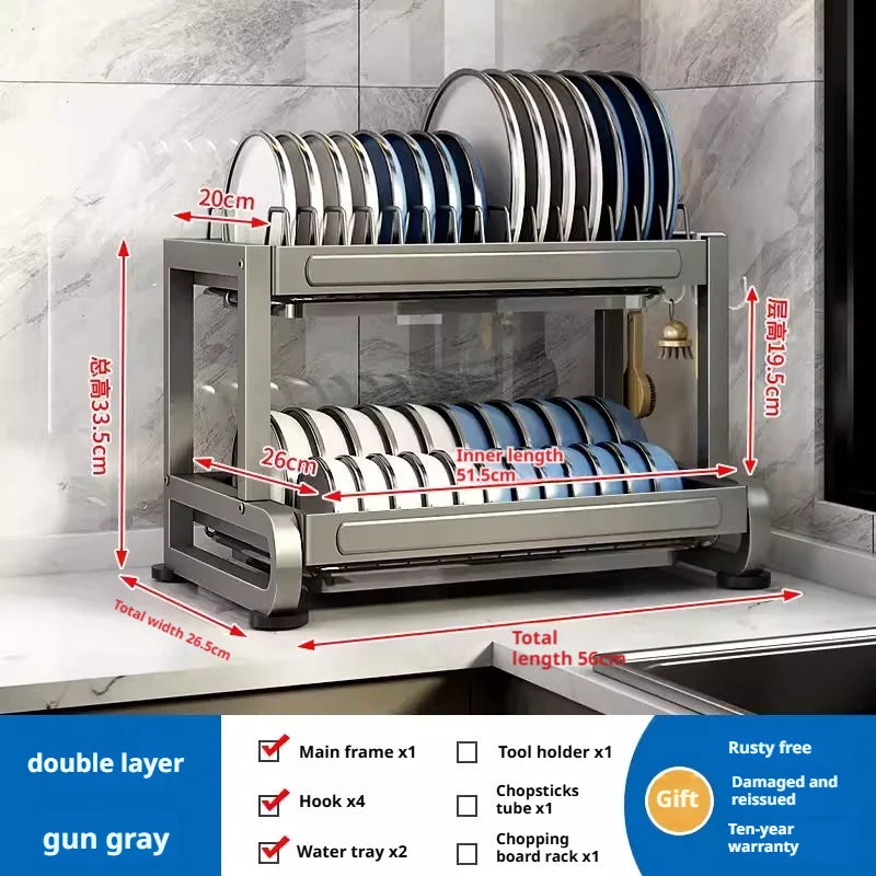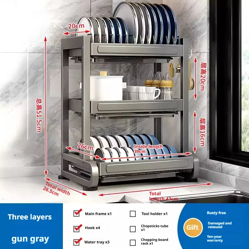 Kitchen Dish Bowl Drainer Storage Rack Countertop Dinnerware Organizer Drain Basket Household Dish Drying Rack Stand Shelf
