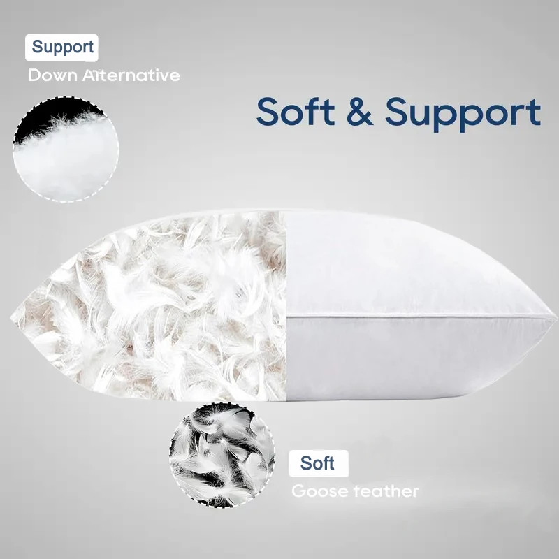 Luxury Goose Feather Pillow, Contains 50% Goose Feather, Soft, Fluffy and Breathable, Skin-friendly , Good Support, All Seasons
