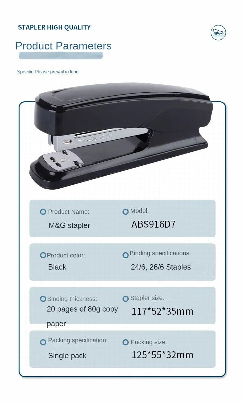 M&G Dual Mode Stapler Business Metal Durable Stapler #12 Office Supplies Single Pack Black/Gray Fits 24/6 & 26/6 Nail Patterns