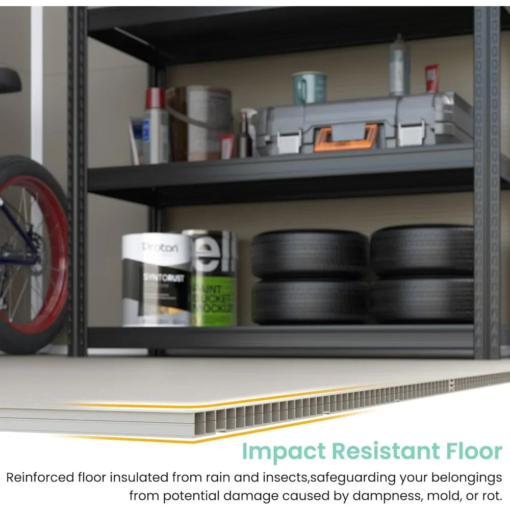 - RECYCLABLE RESIN MATERIAL: Our storage shed is crafted with 12 MM premium polypropylene resin plastic, which is recyclable. Resin shed is corrosion-resistant, waterproof, rustproof and with UV protection for more than 8000 hours, less bending and puncturing, worry-free for use in all weather conditions. It can be used daily for five years without fading