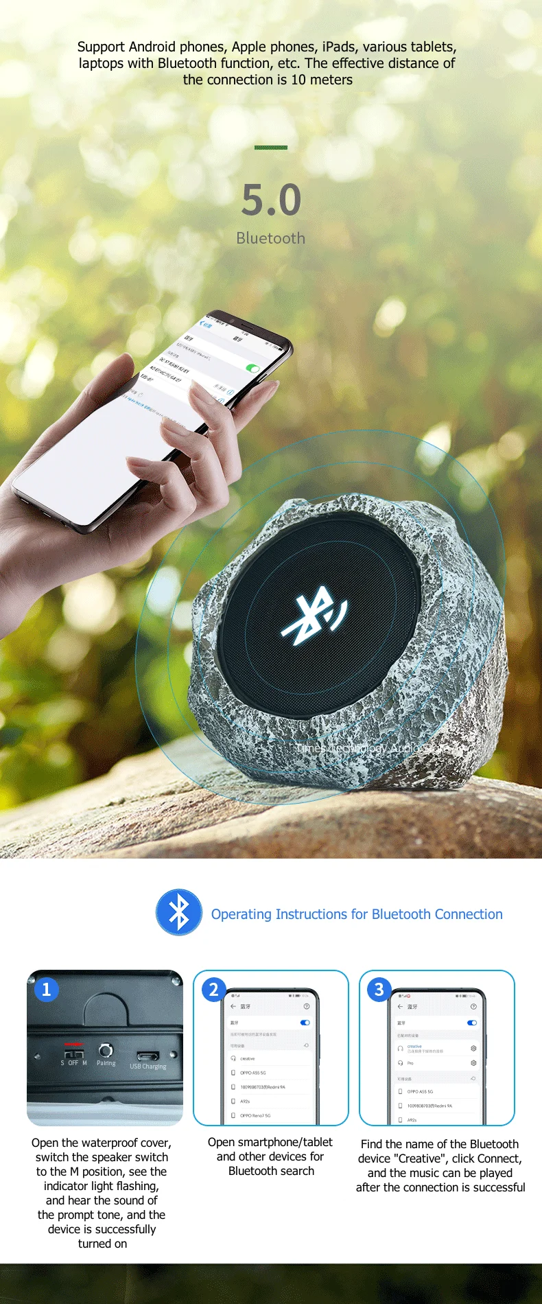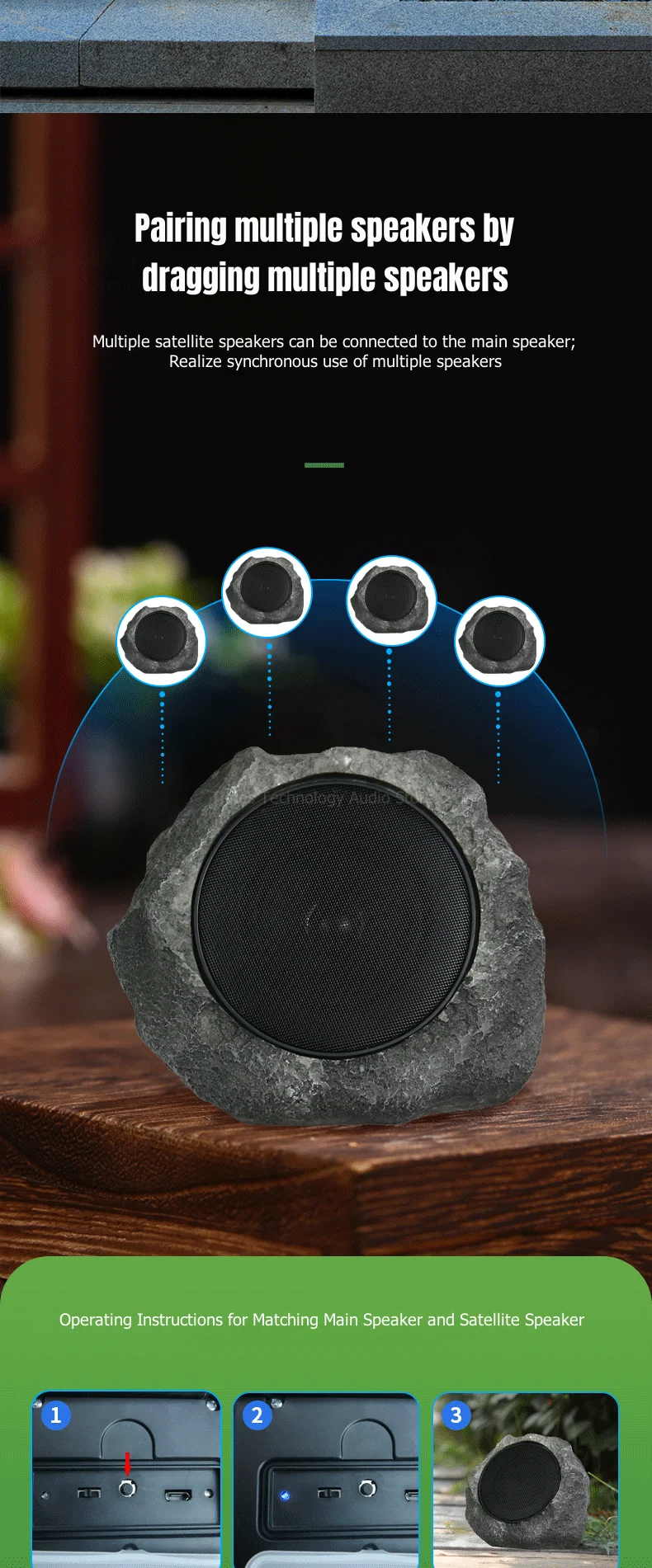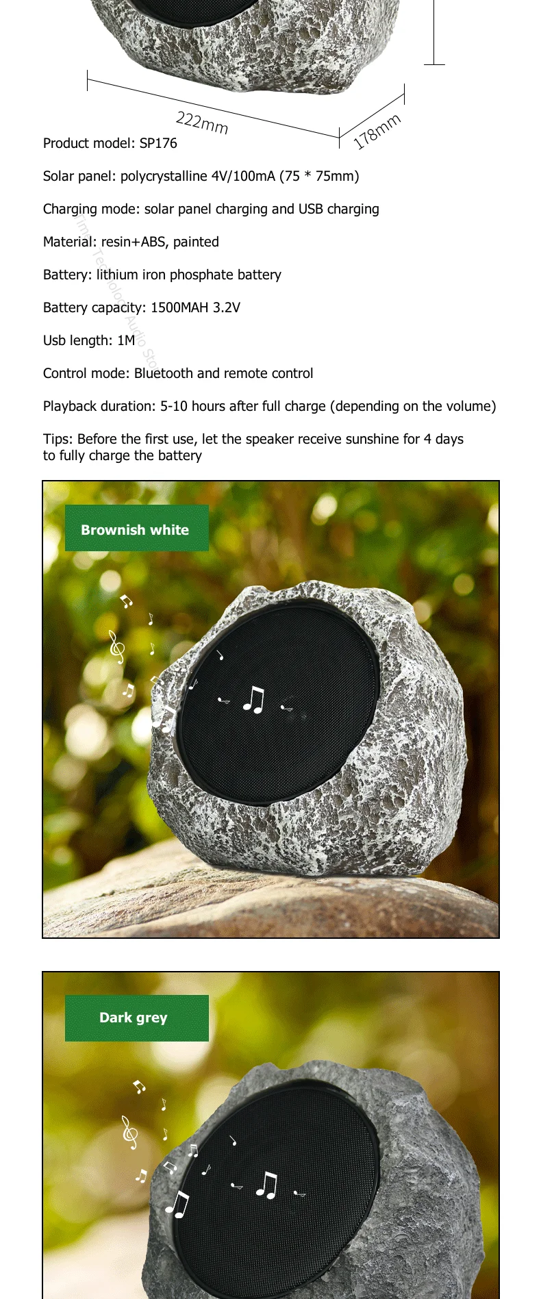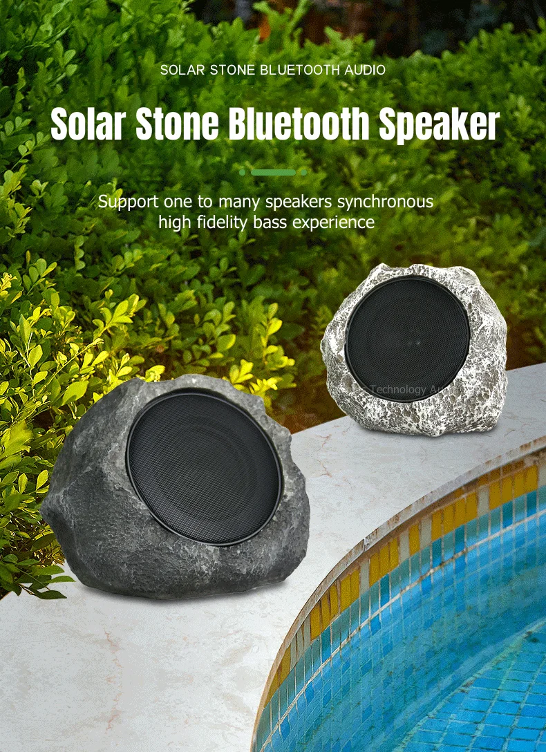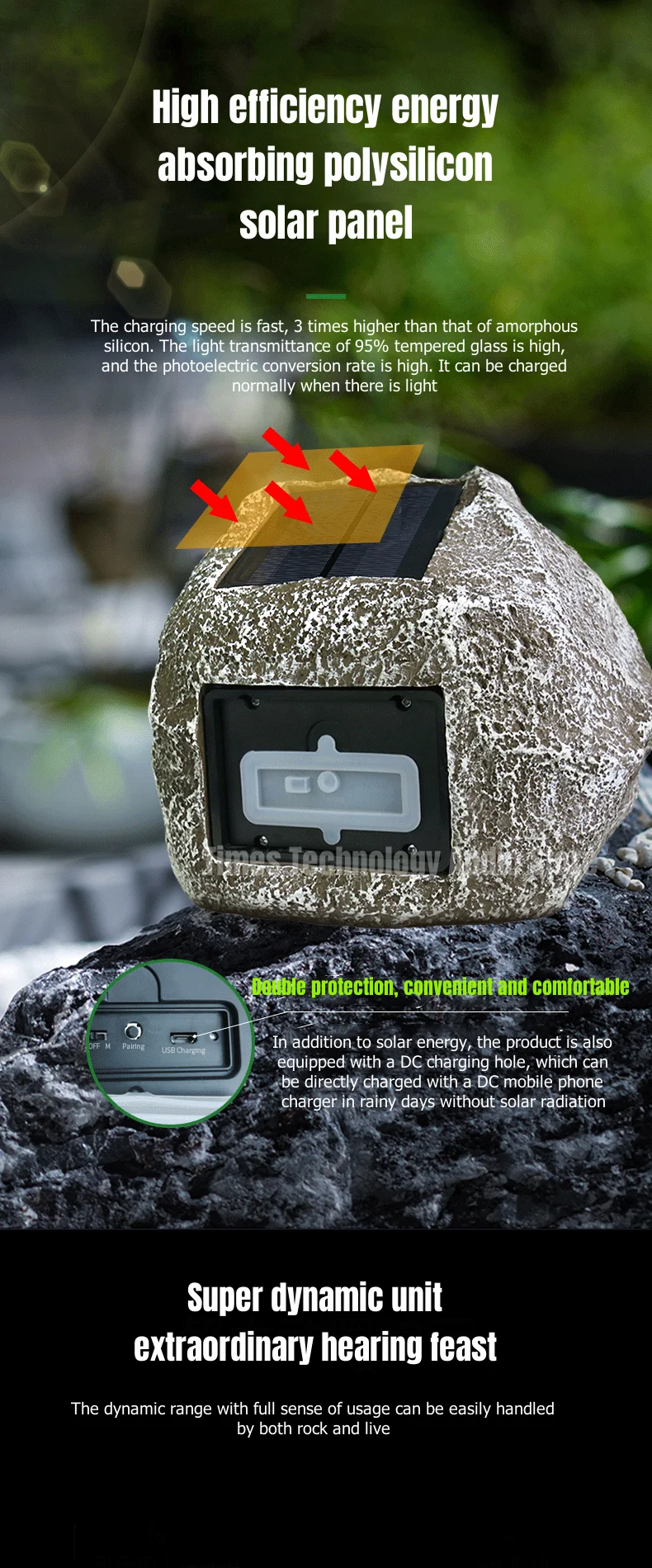 Solar USB Charging Simulation Stone Lawn Bluetooth Speaker Outdoor Waterproof Wireless Stereo Subwoofer Portable Garden Boombox
